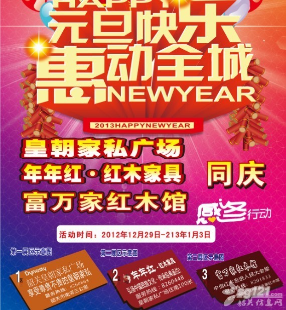 元旦快樂(lè) 惠動(dòng)全城 皇朝家私廣場(chǎng) 年年紅.紅木家具 富萬(wàn)家紅木館 三店同慶